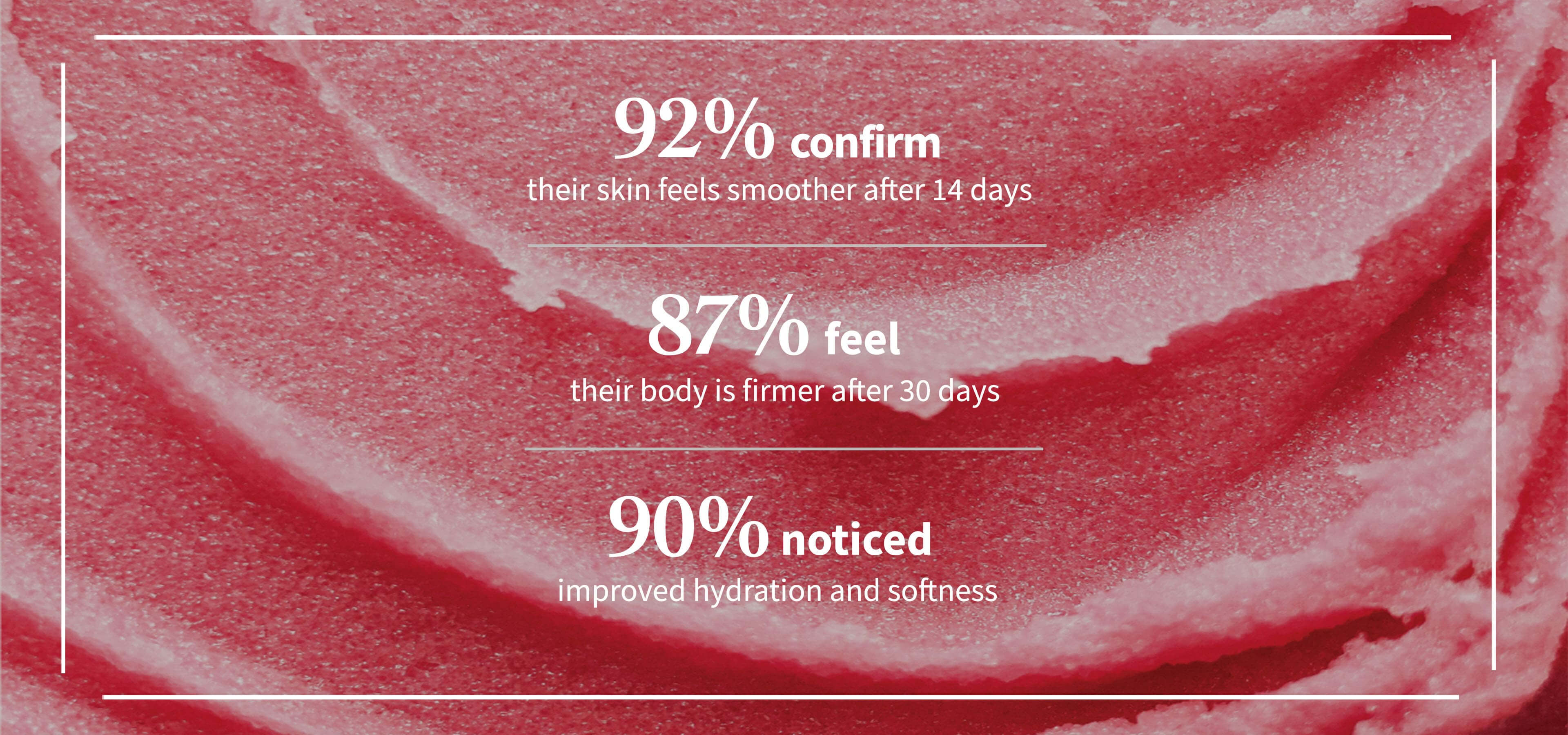 Rinse off the scrub with water, then apply RED GRAPE Detox and Glow Shower Mousse for silky soft skin. As a final step, apply RED GRAPE Body Lotion for deep hydration.