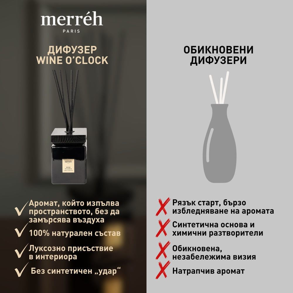 Wine O’Clock Signature Set съчетава изискана ароматна свещ и дълготраен дифузер в една завършена атмосфера